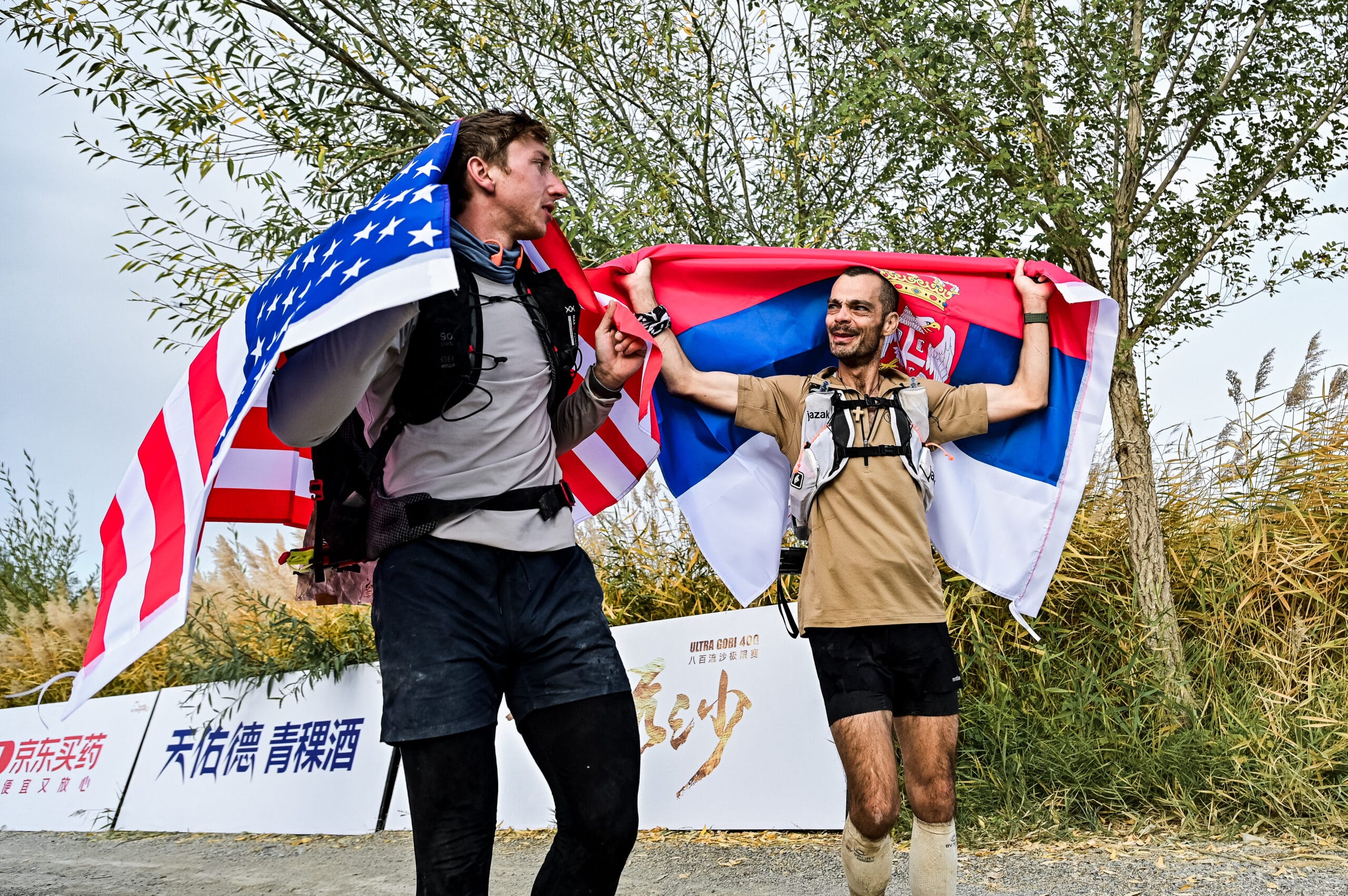 On Day 2 of the Ultra Gobi 400km race, the Gobi Desert became the stage for a moving display of sportsmanship. The athletes currently in second(bib 240 Jovica Spajić Serbia)and third place(bib 234 Aaron Kubala USA) encountered each other on the course and decided to join forces, running side by side for more than 80 km. In this extreme endurance challenge, they are not only fierce competitors but also companions on the journey—embodying the true spirit of “friendship through competition.”